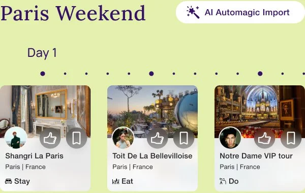 Level up any trip with AI-powered trip itinerary tools that deliver personalized recommendations based on real people’s stories. Because AI won’t ever know the best hidden coffee spot, only a local will.