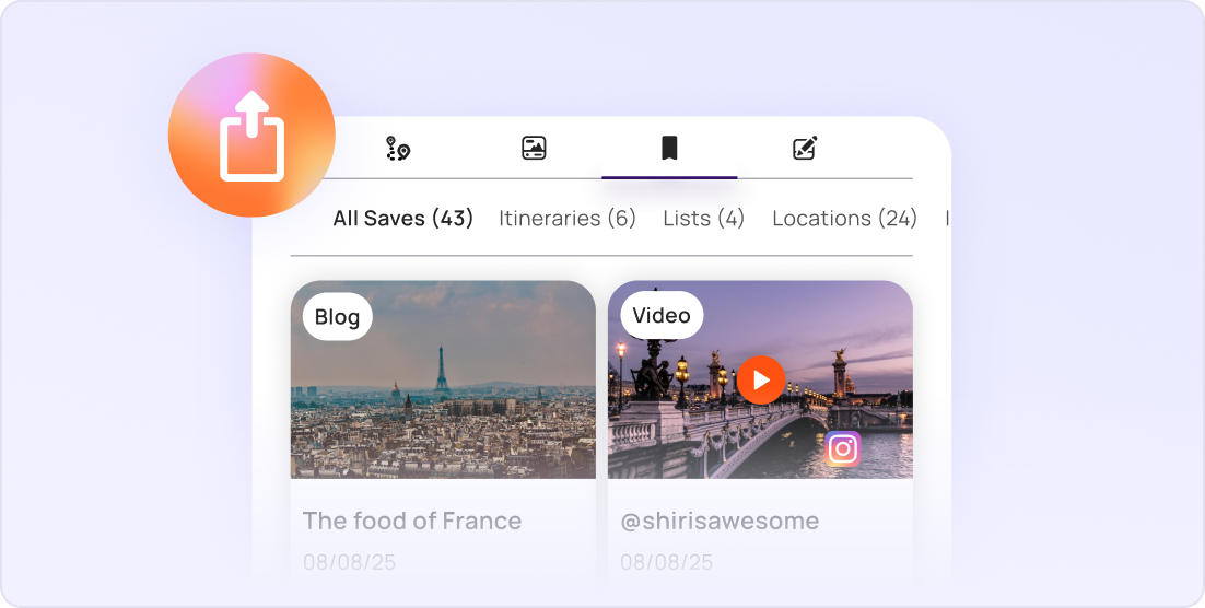 Yes. Add TikToks, Reels, blog posts, or saved spots, your Globe Thrivers profile keeps everything in one place.